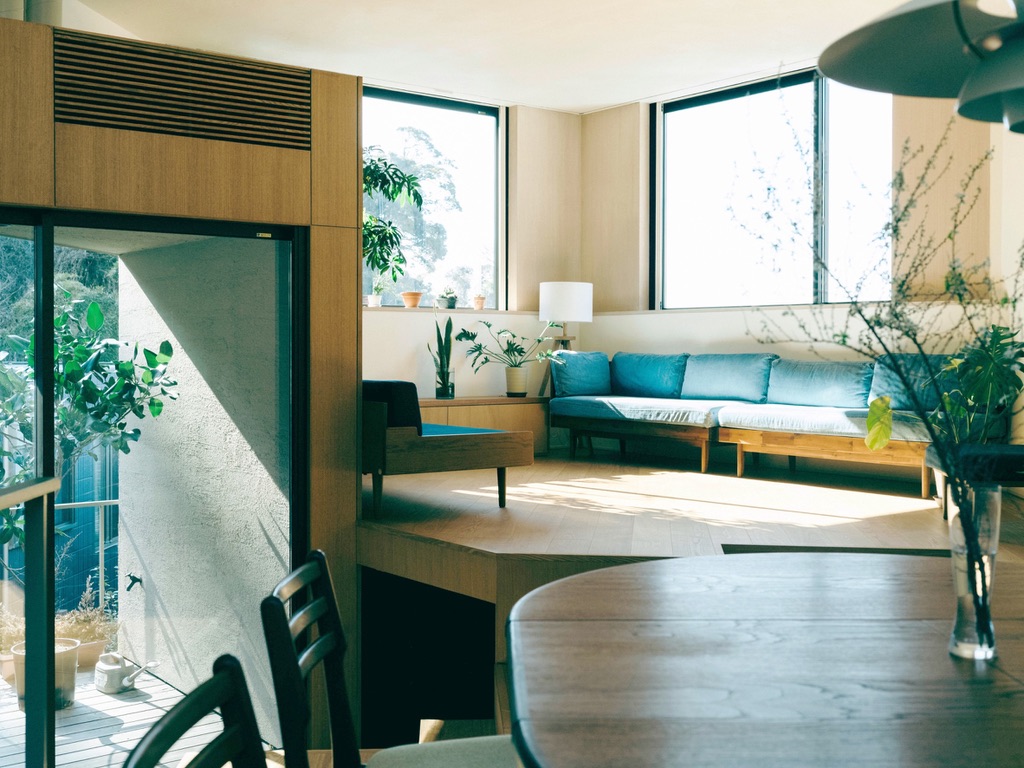 建具で空間を間仕切らず、家具で繋がりを持ちながら隔てられる。