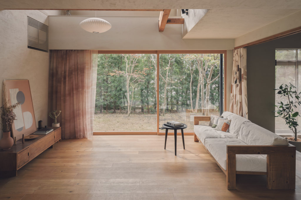 造作木製建具の大開口により室内と庭が自然につながります。